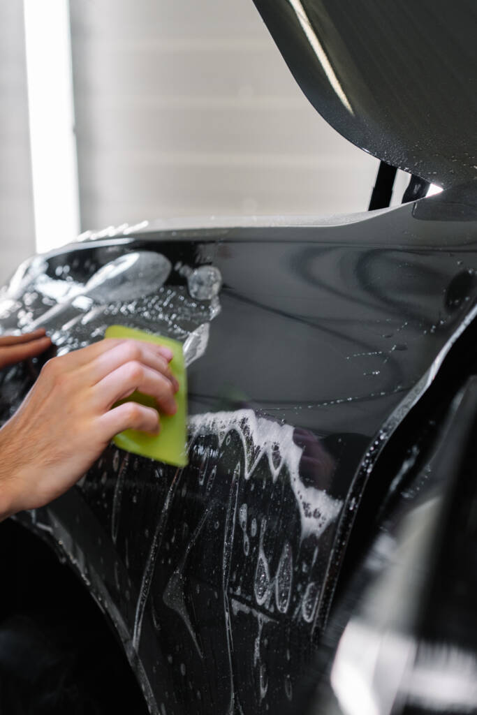 Pierwszym etapem jest zawsze dokładna inspekcja lakieru. Oceniamy jego stan, dobieramy odpowiedni rodzaj folii i ustalamy zakres zabezpieczenia. Następnie przechodzimy do przygotowania – wieloetapowego mycia, dekontaminacji i odtłuszczania. Jeśli lakier ma rysy czy zmatowienia, wykonujemy korektę, aby folia siadła idealnie gładko i nie uwypuklała niedoskonałości.
